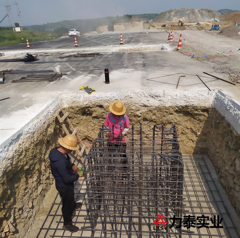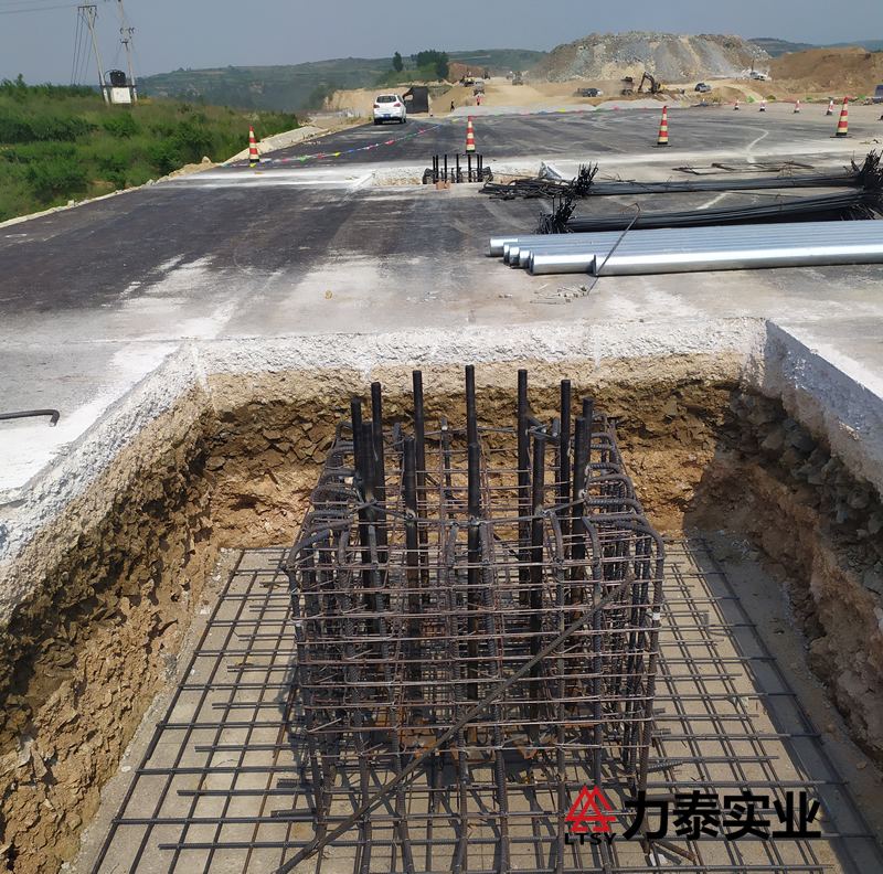 萊陽收費(fèi)站天棚獨(dú)立基礎(chǔ)鋼筋安裝和鋼柱預(yù)埋地腳螺栓安裝