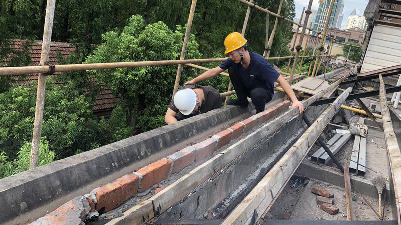 上海延安飯店外墻 常年經(jīng)受自然界凍融循環(huán)的影響,隨著時(shí)間的延長。墻皮脫落,內(nèi)墻滲水,外觀老化陳舊。