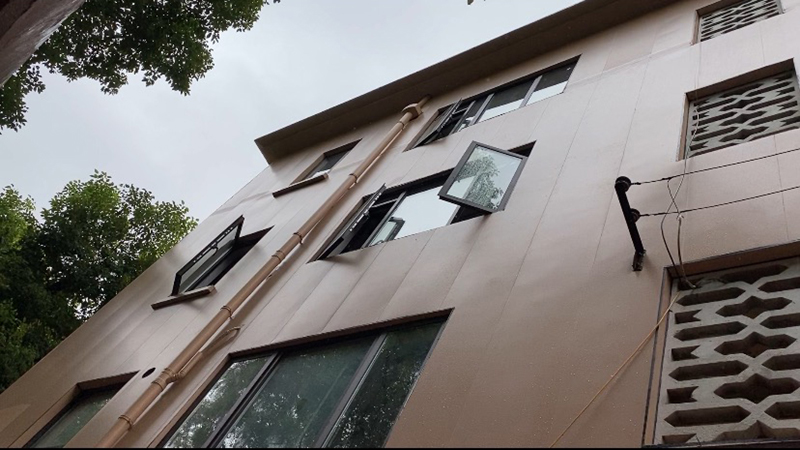 保溫裝飾一體化產(chǎn)品表面采用阻燃B級金屬復(fù)合板作為裝飾層,永不開裂,具有極佳的耐候性,并且強(qiáng)度遠(yuǎn)遠(yuǎn)高于抹面砂漿和耐堿網(wǎng)格布,抗沖擊、抗風(fēng)壓性好。