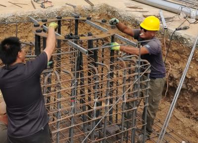 萊陽(yáng)收費(fèi)站天棚獨(dú)立基礎(chǔ)鋼筋安裝和鋼柱預(yù)埋地腳螺栓安裝
