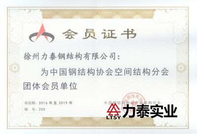 會員證書:中國鋼結(jié)構(gòu)協(xié)會空間結(jié)構(gòu)分會團體會員單位