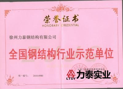 榮譽證書:全國鋼結(jié)構(gòu)行業(yè)示范單位